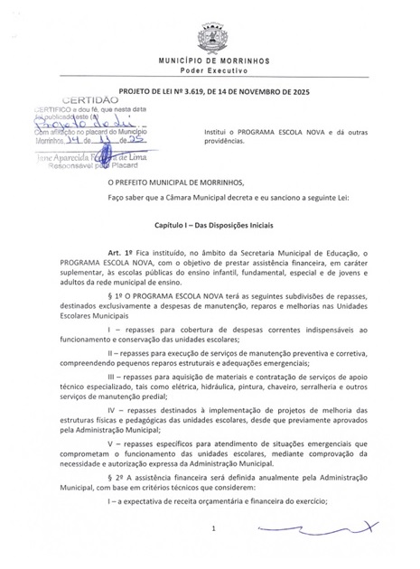 Com celeridade, a Câmara Municipal de Morrinhos aprovou no início de dezembro, o Programa Escola Nova, que visa prestar assistência financeira, em caráter suplementar, às escolas públicas do ensino infantil, fundamental, especial e de jovens e adultos da rede municipal de ensino.